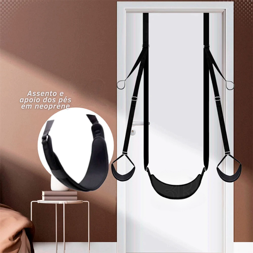 Apresentamos o ❝Balanço Erótico❞, um balanço suspenso para portas totalmente regulável e seguro, que suporta até 130kg. Ideal para quem deseja experimentar posições inusitadas com praticidade, este acessório ousado é perfeito para prolongar suas relações com conforto e estilo.