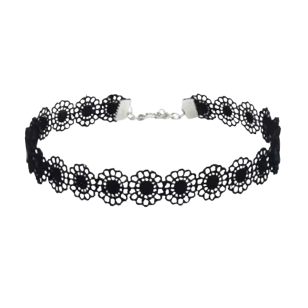 Delicada na aparência, intensa na atitude. Esta choker floral é a escolha certa para quem busca expressar estilo e personalidade em cada detalhe. Com acabamento artesanal e visual inspirado no gótico moderno, ela envolve o pescoço com charme e um toque sombrio irresistível.
