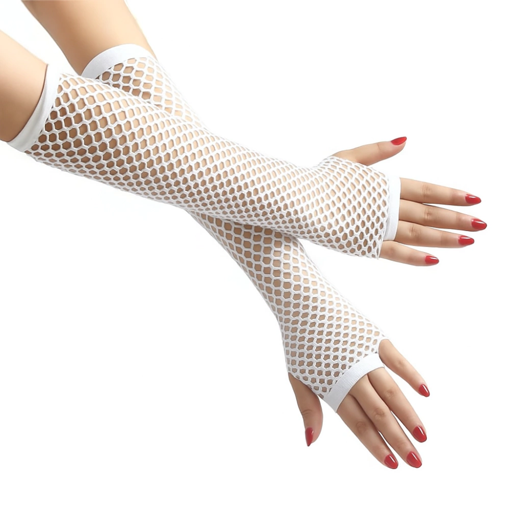 Elegância com ousadia. As Luvas Brancas Longas em tela arrastão trazem um toque provocante e contemporâneo para composições que exigem atitude e refinamento. O design sem dedos permite movimentos livres, enquanto a malha em poliéster envolve o braço com suavidade e firmeza.