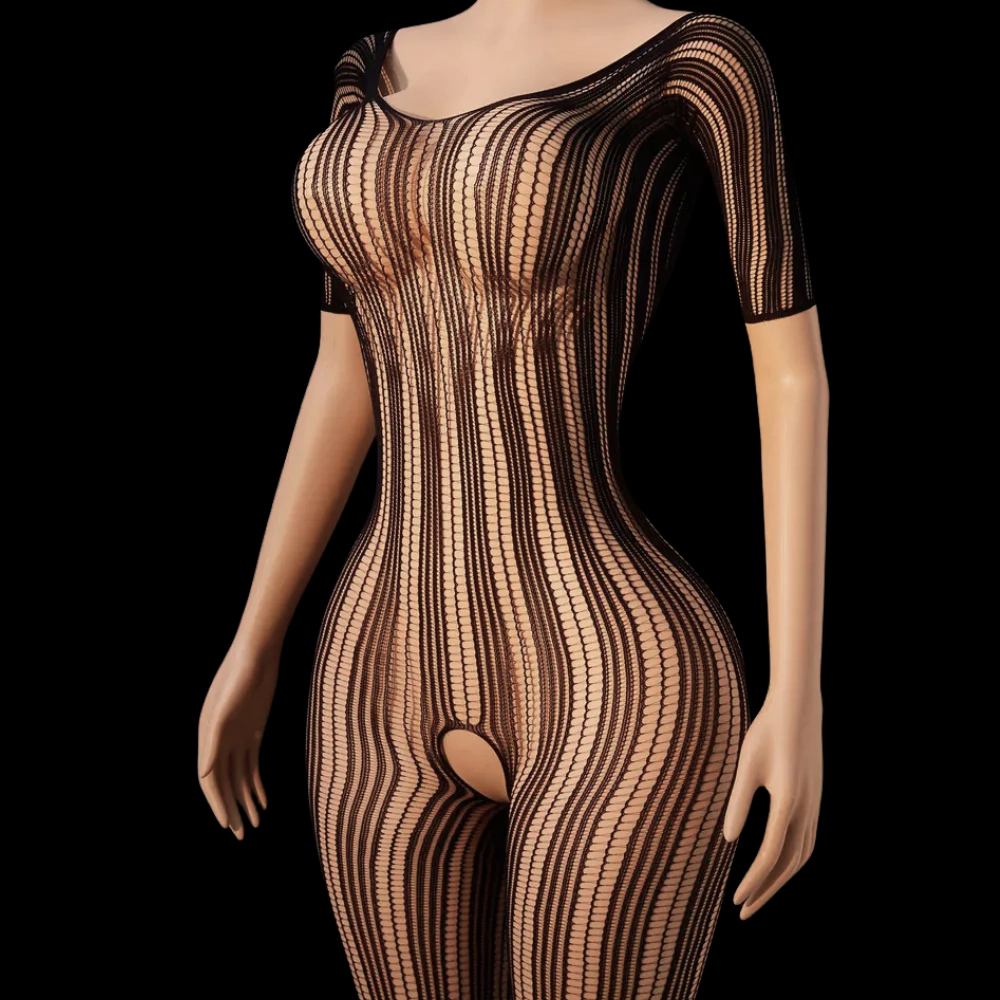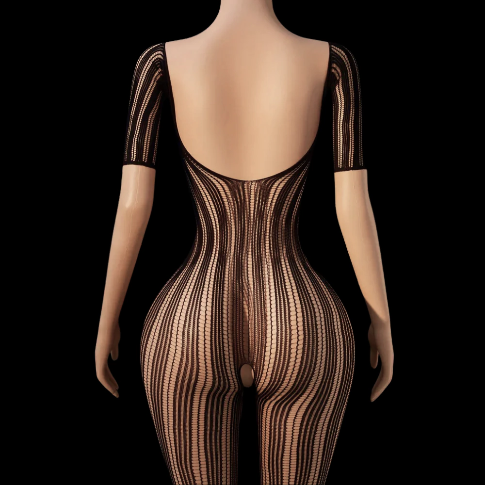 As mangas curtas e a transparência sutil transformam o modelo em uma escolha ousada e refinada, ideal para ocasiões especiais. O recorte inferior anatômico garante conforto durante o uso, além de ampliar as possibilidades de composição com acessórios e lingeries. Com decote canoa e costas parcialmente abertas, este macacão é a definição perfeita de equilíbrio entre provocação e sofisticação.