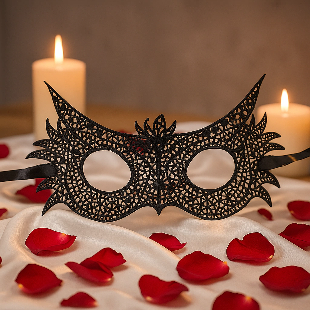 Confeccionada em renda leve e ajustável por fita de cetim, essa peça é ideal para festas com tema, encontros sensoriais ou jantares secretos. Um convite à fantasia com desejo por trás da máscara.