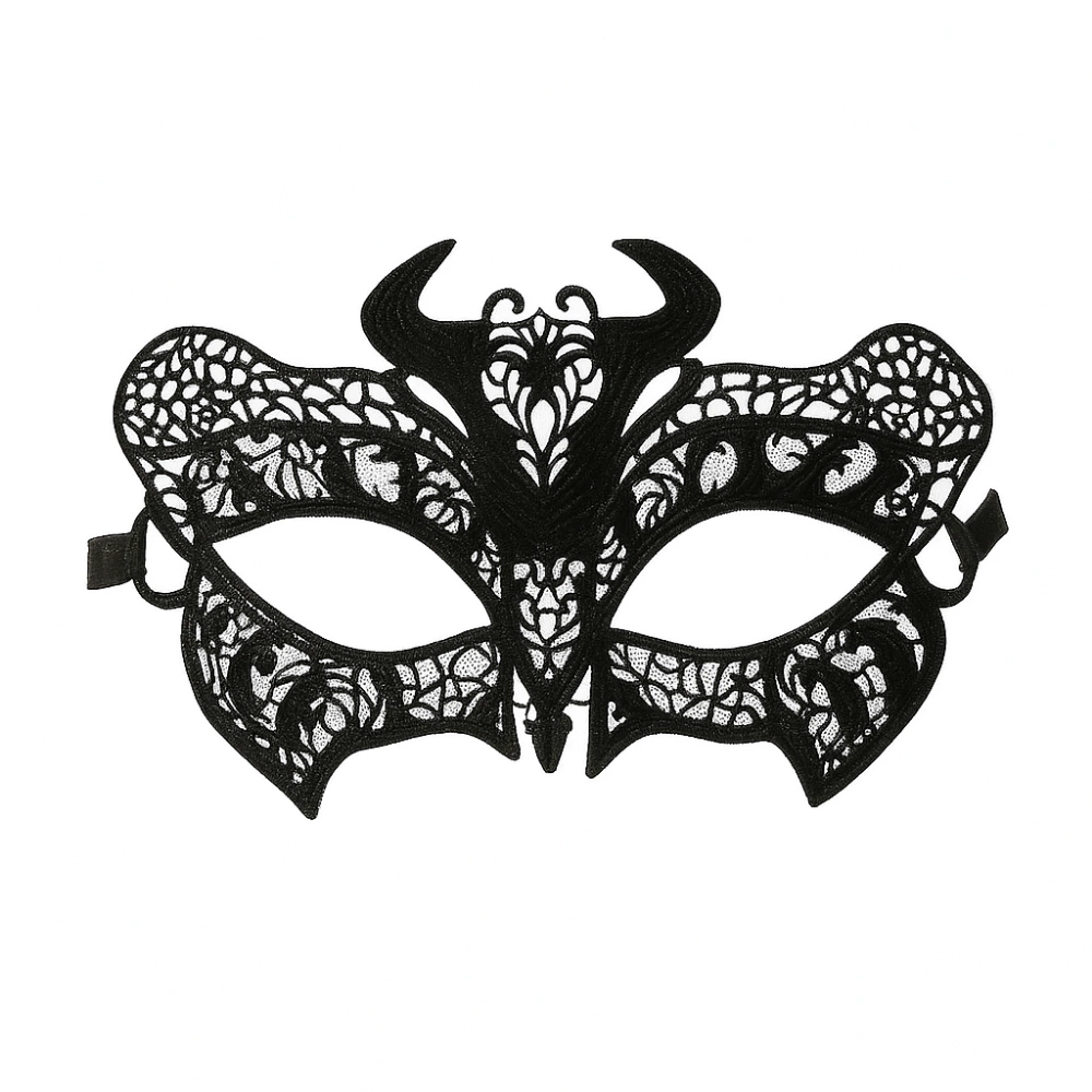 Essa máscara veneziana se destaca por seu design provocante: os chifres esculpidos e a simetria detalhada em renda criam uma presença hipnotizante. Ideal para quem deseja explorar o mistério com intensidade e deixar o visual carregar significados — desejo, liberdade ou pura provocação estética.