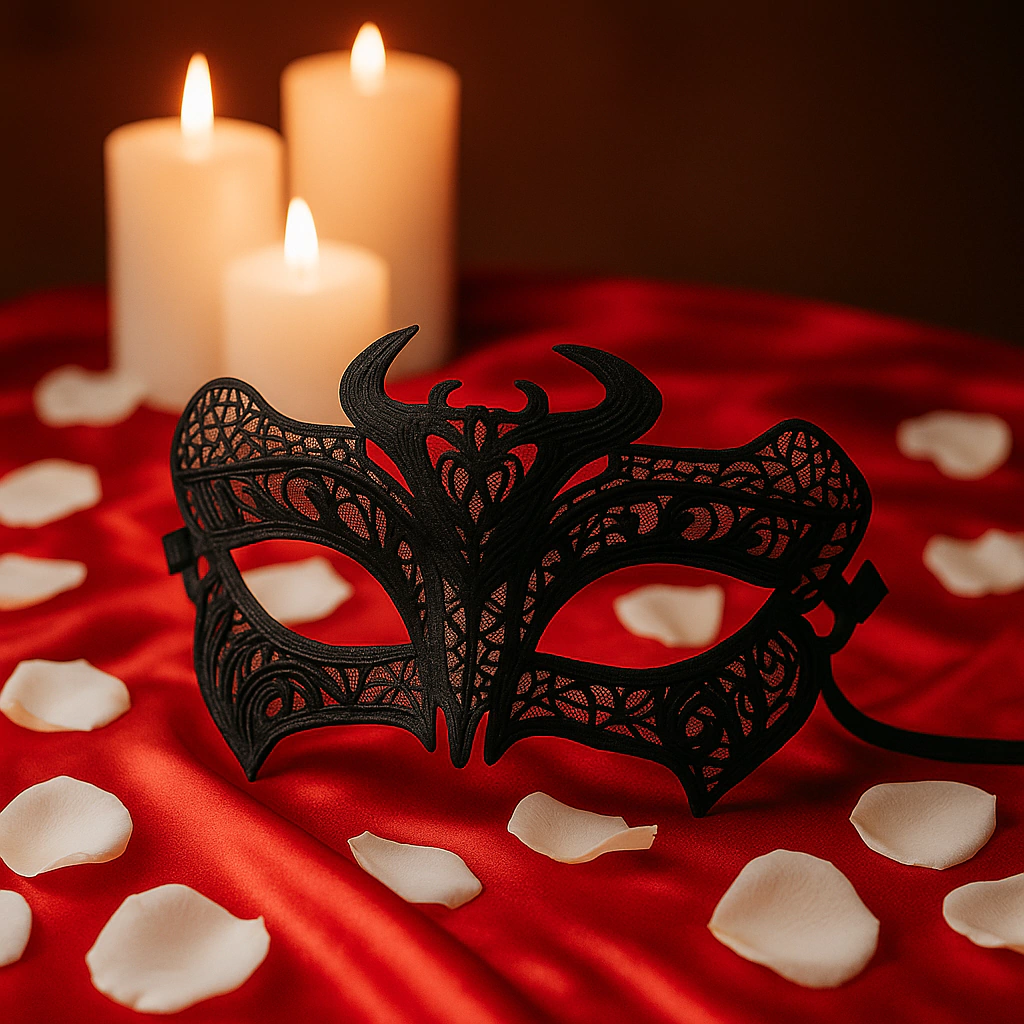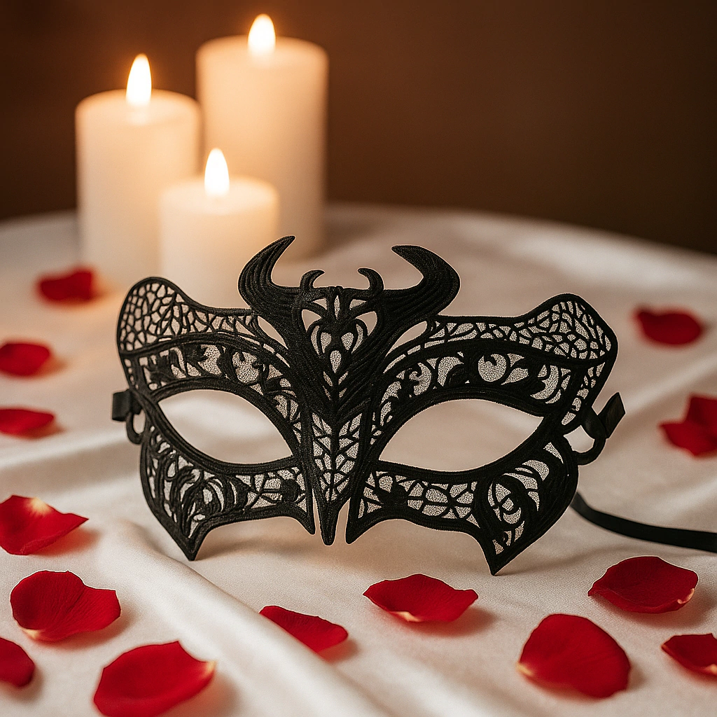 Com estrutura leve e amarração em fita de cetim, molda-se ao rosto com conforto e firmeza. Uma peça única para jantares temáticos, festas sensoriais, produções ousadas ou jogos onde o olhar é protagonista.
