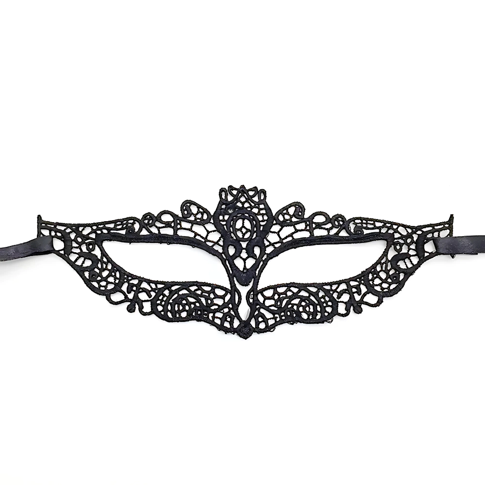 Com um design alongado e arabescos finos em renda delicada, essa máscara veneziana é um convite ao jogo do mistério. Elegante, leve e ajustável, ela emoldura os olhos com perfeição, realçando traços com um toque de nobreza.