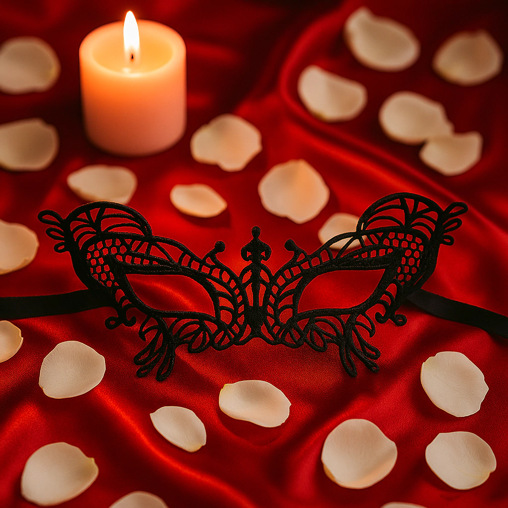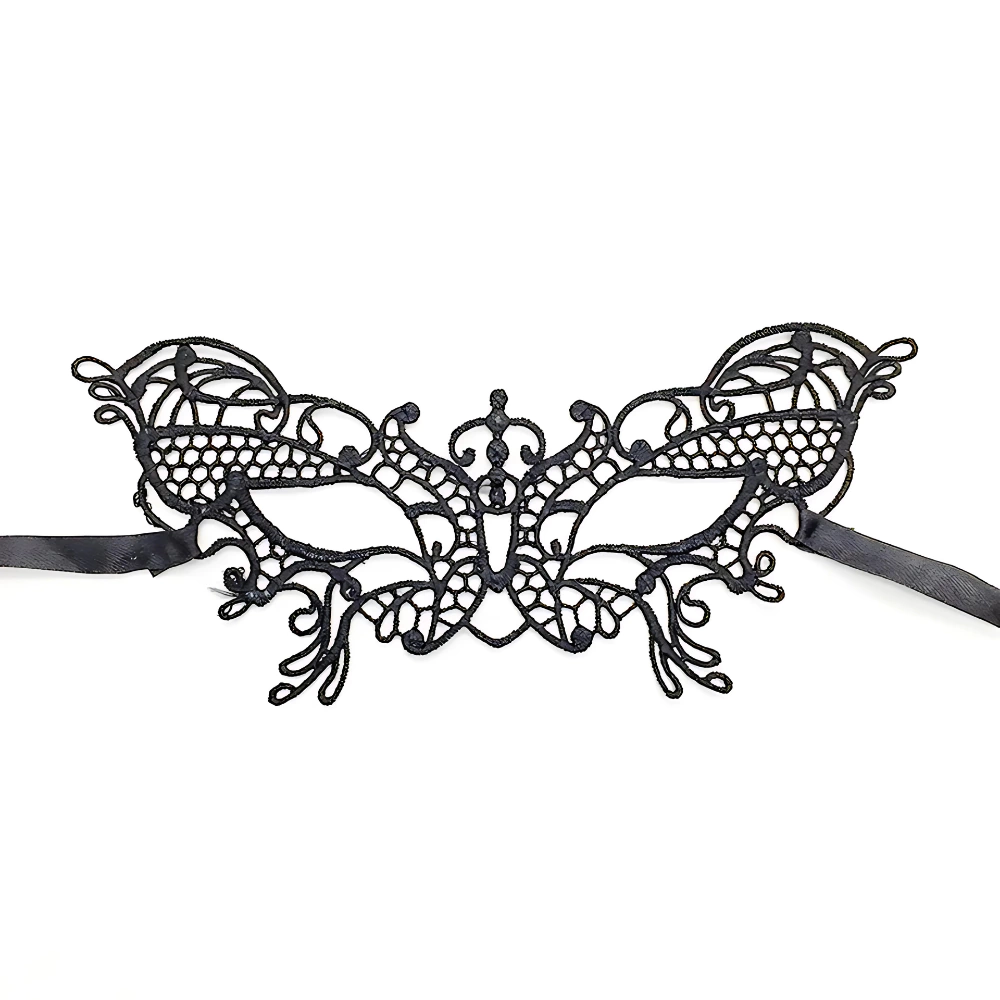 Inspirada na delicadeza das asas de uma borboleta, essa máscara veneziana em renda fina traz um charme etéreo e misterioso. Seu desenho rendado contorna os olhos com suavidade e elegância, criando uma atmosfera de sedução leve, ideal para noites onde o visual fala mais que mil palavras.
