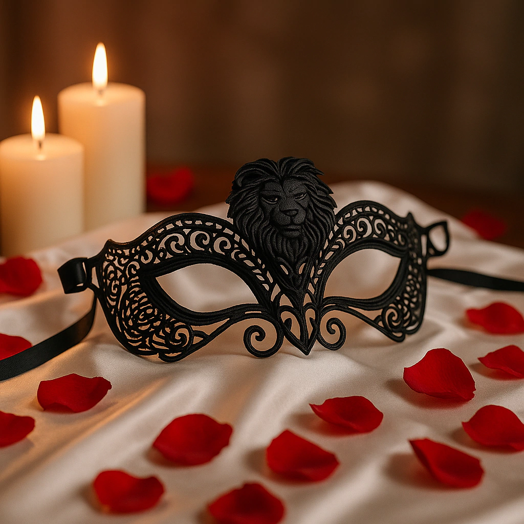A sofisticação encontra a força simbólica nesta máscara veneziana exclusiva, com acabamento de renda preta e um imponente leão esculpido ao centro. Uma peça única, feita para destacar presença, mistério e sensualidade com classe e autoridade.
