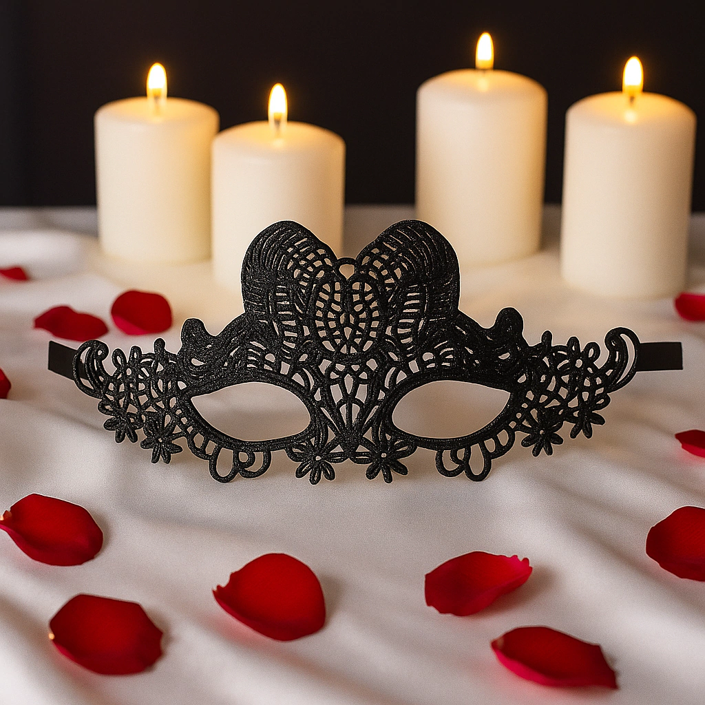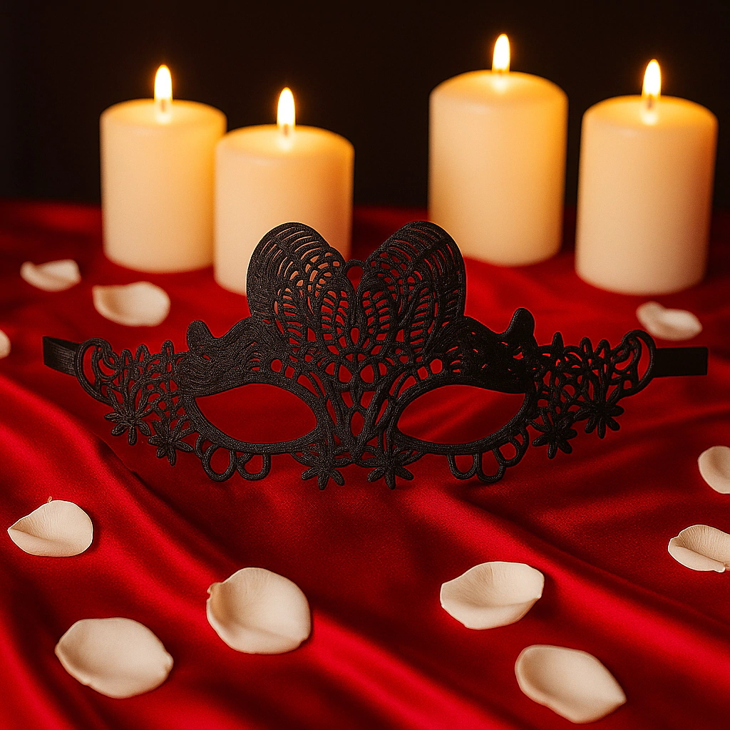 O tecido leve se adapta ao rosto com conforto, e a fita de cetim garante um ajuste elegante e firme. Indicada para festas de máscaras, eventos sensoriais ou experiências a dois em que o visual é parte do jogo.
